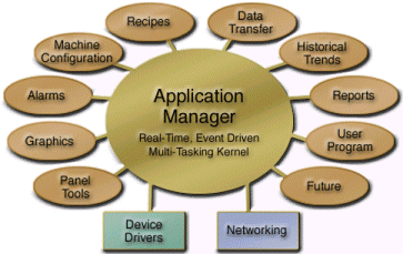 This Interact Module enables the transfer of multiple applications throughout the manufacturing facility - or in remote locations using of-the-shelf LAN/WAN operating systems. It has a "network aware" architecture that simplifies centralization of applications and/or program files on a network server.
